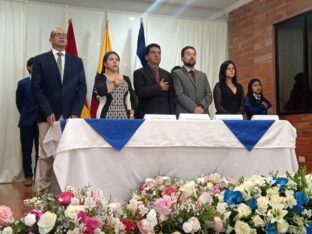 Agradecemos a la Lcda. Marisol Peñaloza, Vicealcaldesa de Cuenca, al Ing. Marco Toledo, Gerente de Electro Generadora del Austro Elecaustro S. A. Mgst. Cisne Reyes, Directora Participación Ciudadana Prefectura Azuay y el Dr. David Acurio, Director General de Vinculación con la Sociedad de la Universidad de Cuenca, por acompañarnos en la mesa directiva.